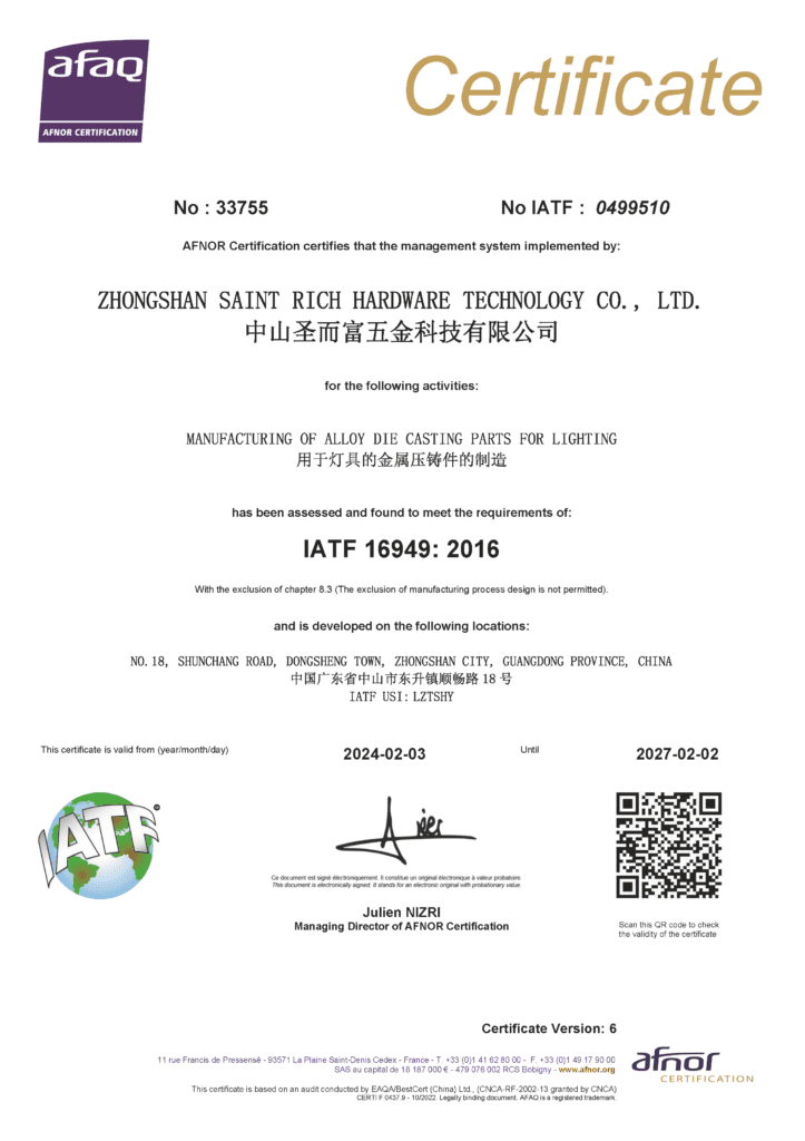圣而富压铸公司成立于2007年,位于广东省中山市小榄镇高沙第二工业区,中山圣而富是一家专注于高质量锌合金压铸、铝合金压铸及模具设计与制造的企业。我们以“品质至上,准时交货,持续改善,顾客满意”为质量方针,严格执行IATF16949、ISO9001和ISO14001质量管理体系,服务客户涵盖无人机、机器人、新能源、汽车、灯饰、电器、家具、医疗器械、运动器材、智能锁等多个行业。